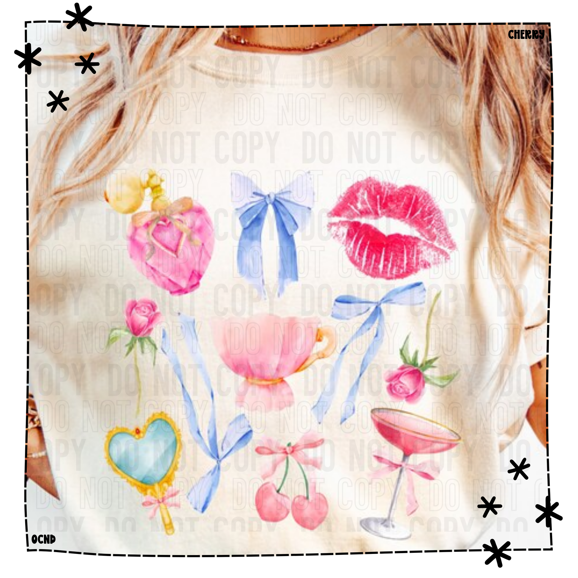 Coquette meets vintage in this collage of feminine flair and fruit-forward fun.