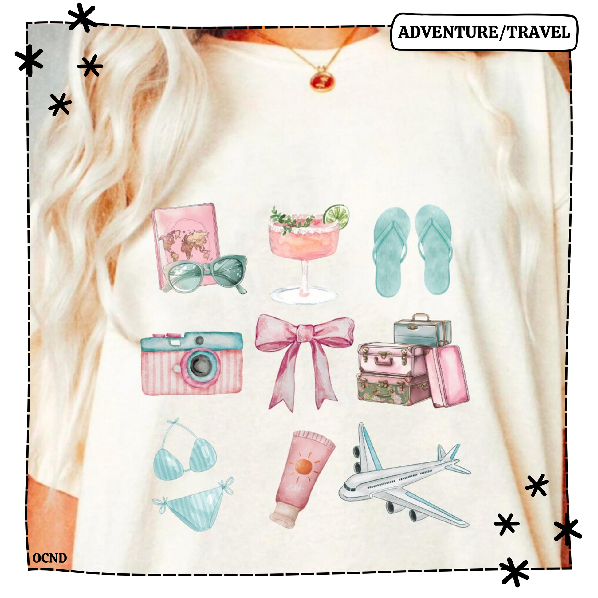 All the pretty travel vibes in one place. Girly Travel Collage is full of dreamy colors and cute icons that make this tee a suitcase essential.