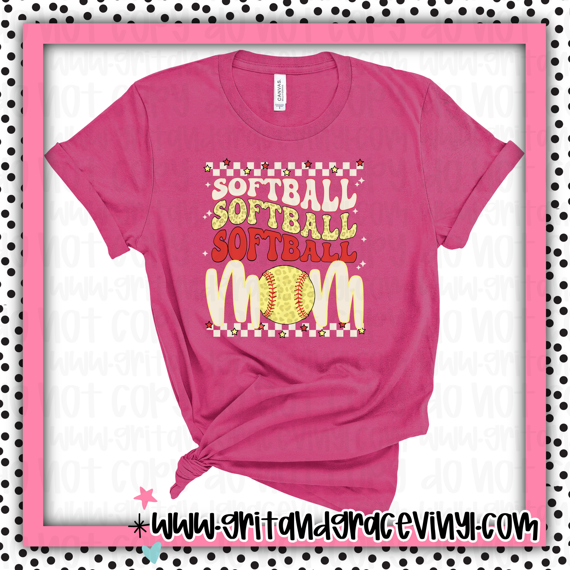 Softball Mom Stacked (Red & Yellow)