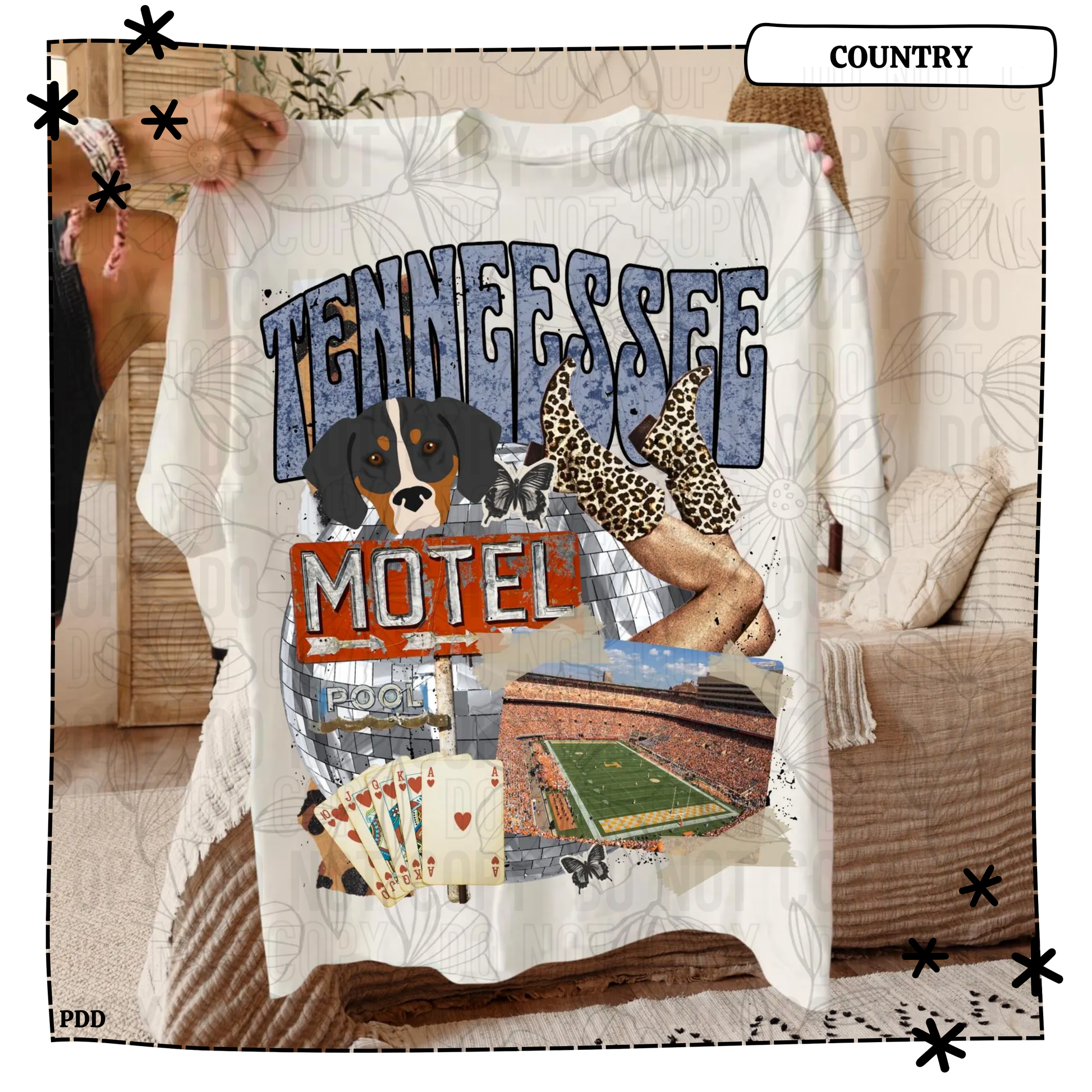 Shirt & design color may slightly vary due to lighting and monitor settings. No decorative accessories pictured are included, only your shirt.